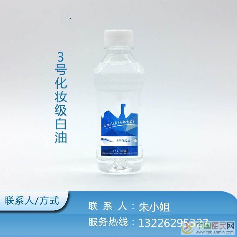 3号化妆级白油适用于化妆工业:可作发乳、发油、唇膏、面油、护肤油、婴儿油、雪花膏等软膏和软化剂的基础油来自www.cnbianmin.com。也适用于作硅酮玻璃胶溶剂PVC,降粘剂,纺丝油等行业中_国_便_民_网。